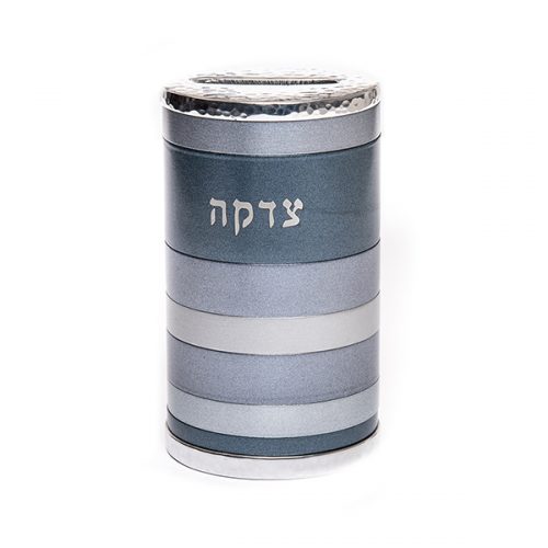 A classic anodized and nickel Tzedakah Box with beautiful striping