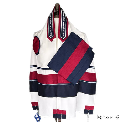 Black and Red Striped Silk and Brushed Cotton Tallit