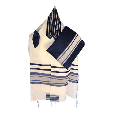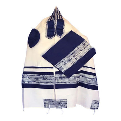 Navy and Silver Wide Striped Tallit on Bushed Cotton